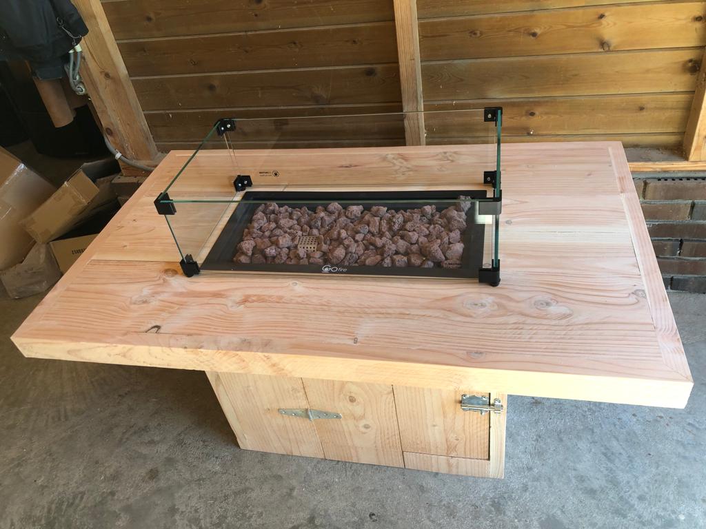 Tuintafel, Tuinmeubels, vuurtafels, bartafels, salontafel en bijzettafel van duurzaam Douglas hout,
